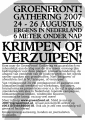 Het CDA in Friesland wil voorkomen dat in augustus honderden dierenactivisten een internationale bijeenkomst op een camping in Appelscha beleggen. "Het zijn terroristische activiteiten en die moet je keihard bestrijden", aldus het Statenlid Rendert Algra. Lees verder... | Krimpen of verzuipen; Nieuwe GroenFront! campagne GroenFront! - 09.07.2007 15:28