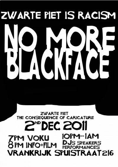 Zwarte Piet is not black because he climbed through the chimney, for that doesnt explain the black curly hair, the red lips, the clean clothes and creool earrings. Zwarte Piet was created in 1852 in the times that Holland colonized Africa and dealt in slaves. The whole image of Sinterklaas, the mighty white man and all his black servants is a racist one. The use of Blackface is not tolerated in most countries, time for the same to happen here!