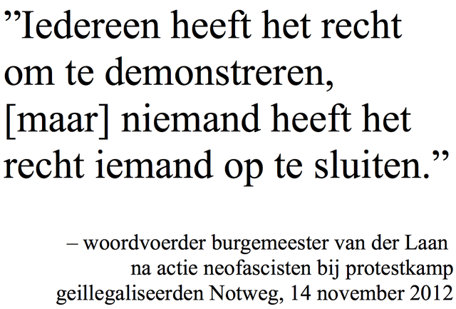 print uit, kopieer en verspreid door de hele stad om de hypocrisie van van der Laan in beeld te brengen.