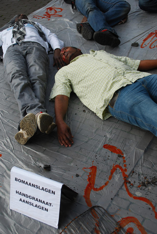Om duidelijk te maken wat er gebeurt met gedeporteerde Somalische mannen, vrouwen en kinderen zal de werkgroep ‘Somalië onveilig’ op vrijdag 11 januari het Hofplein in Den Haag demonstratief bezaaien met de bloederige lijken van de slachtoffers van het aanhoudende geweld in Somalië.