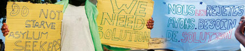 from different sources I have heard, that refugees from Camp Choucha in southern Tunisia, who fled war and persecution in Libya, tried to make their situation and their demands public during the World Social Forum in Tunis. In the end of June 2013 the camp in the desert will be closed although no solution has yet been found for the the majority of the 1044 people who are still living there. 815 people have been recognised as refugees and should therefore actually have the right to resettlement (admission into a safe third country). But this has been denied to 400 of them, instead, they have been told they would be „integrated locally“ in Tunisia. But in Tunisia many of them do not feel safe. They have experienced racist attacks and because of the fact that asylum laws do not exist in Tunesia, they cannot get a residence status and therefore they don't have any rights in this country. Because of this situation 41 people of this group of recognized refugees (mainly from Sudan, Eritrea and Somalia) have been on hunger strike in front of the UNHCR building in Tunis since March 29th. They demand the admission into a country with a functioning asylum system. 22 Palestinian refugees aligned themselves with similar claims. 222 refugees in Camp Choucha, whose applications for asylum have been rejected due to a sloppy procedure, don't get any food, medical care and more recently don't even get water any more. Therefore they lay claim to a reconsideration of their asylum procedures, approval of their reasons to apply for asylum and admission into a safe third country. They protested for their claims in Tunis for a week in January.