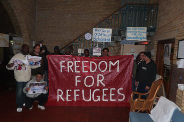 Today, April 11th of 2013, on the solidarity day for Choucha the dutch refugees in protest from the Flichtchurch (Amsterdam) and Flighthouse (The Hague) came together. Both empty churches were occupied after several protest camps through the country in the last two years. The Flightchurch houses some 200 mainly subsaharan undocumented migrants who have no right for any facilities from the state. The Flighthouse houses some 40 rejected refugees mainly from (Kurdish) Irak.