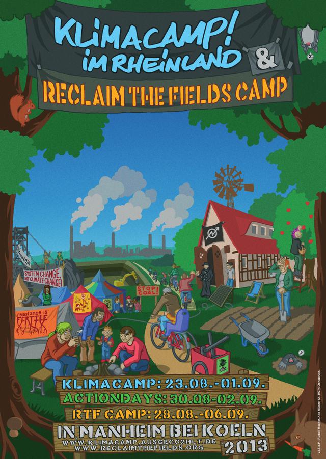 Kom ook naar het RTF- & Klimaatkamp 2013 bij Manheim. Doe mee aan de actiedagen van 30 augustus tot en met 2 september. Weg met de steen- en bruinkool! Hier met de velden en bossen!