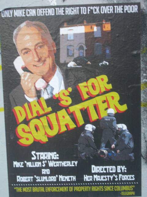 PS Check our twitter for updates on another courtcase, resuming november11, in which a squatter is standing trial for calling a member of parliament (mad mike weatherley, advocate of the squatban) a coward!! You couldn't make it up...