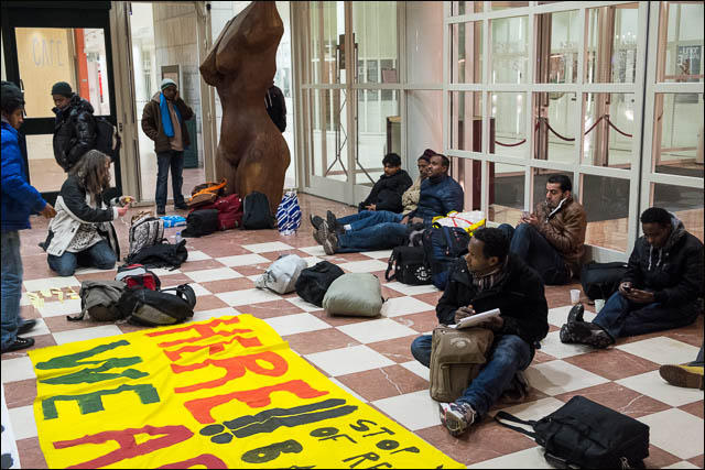 Vluchtelingen vragen support in de stopera nu