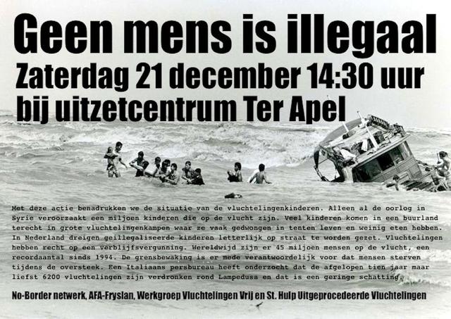 GEEN MENS IS ILLEGAAL :: ZATERDAG 21 DECEMBER 14:30 UUR BIJ UITZETCENTRUM TER APEL ::