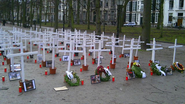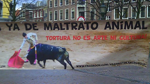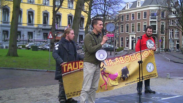 Gisteren Herdenking 60.000 vermoorde stieren per jaar, voor de Spaanse Ambassade in Den Haag.