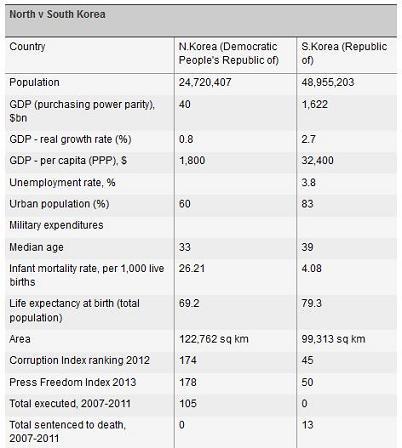 Man... dat is natuurlijk afkomstig van http://www.theguardian.com/world/datablog/2013/apr/08/south-korea-v-nort... , niet van andere blogs of Indymedia's waar het ook is gespamt, en ook niet gepost door de bron, ic The Guardian.