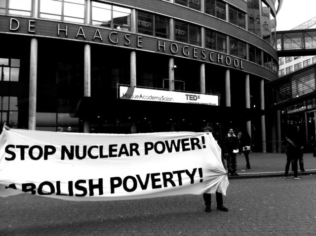 De demonstratie “Stop nuclear power! Abolish poverty!” op zondag 23 maart start om 14:00 op het Hobbemaplein, in Den Haag.