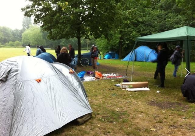 Update We Are Here-tentenkamp: 2 kennelijk hogere agenten zijn langs geweest op het We Are Here-tentenkamp in het Oosterpark: die deelden mee dat het kamp wordt getolereerd tot 23 uur, daarna ontruiming indien mensen niet weg zijn gegaan...