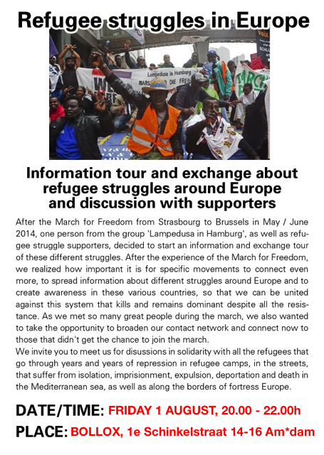 Information tour and exchange about refugee struggles around europe and discussion with refugees and supporters.