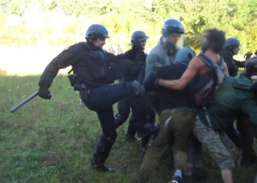 Sinds 1 september is begonnen met het kappen van bomen om plaats te maken voor het stuwmeer en dit kappen moet onder bescherming van ME-ers geschieden omdat demonstranten voortdurend proberen om het bos te beschermen. De ME treedt daarbij hard op, onder andere met het afschieten van traangasgranaten en andere explosieve munitie (de in Frankrijk bekende flashbals).