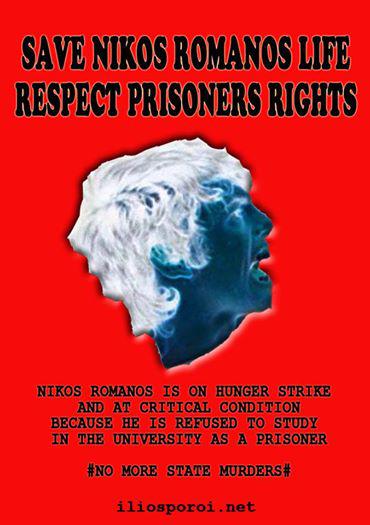 At the 11/10/2014 Nikos Romanos begun a hunger strike laying claim to educational passes from prison, in order to be able to take classes in the university that he has succeeded to enroll.