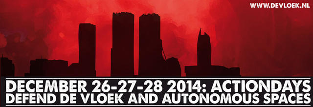 Van 26 t/m 28 december 2014 zullen de actiedagen voor het behoud van vrijplaats De Vloek en autonome ruimtes plaatsvinden in Den Haag. Drie dagen vol van acties en demonstraties. Hieronder volgt een update met de laatste stand van zaken.