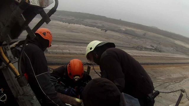 Na de bezetting van een graafmachine in de bruinkoolmijn Inden op 15 maart (zie derde foto), is dit de tweede actie binnen een zeer korte tijd die de RWE bruinkoolwinning tot stilstand brengt. Ondertussen duurt de bezetting in het Hambach bos--sinds de lente van 2012 permanent bewoond is door activisten--ook nog voort.