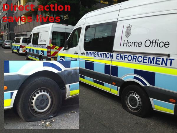 In Engeland werd vorige week met succes een razzia onder migranten gesaboteerd. Daar kunnen we een voorbeeld aan nemen: directe actie kan levens redden! Banden lekgestoken en smerissen met eieren en fruit bekogeld. Maak het ze zo moeilijk mogelijk. Het kán! Meer migranten zouden zijn gearresteerd als mensen waren blijven toekijken. De tijd van rechterlijke uitspraken afwachten, is allang voorbij. We kunnen ons niet neerleggen bij het geweldsmonopolie van de staat. We kunnen ons niet neerleggen bij de macht van lieden in toga's in paleizen van justitie om mensen op te sluiten en te deporteren. Aan hen kunnen we de vrijheid niet overlaten. Het is dan al te laat.