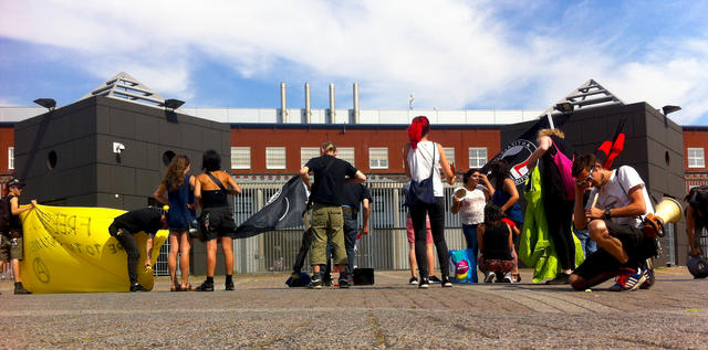 Gisteren (24-8-2015) hielden antifascisten 1,5 uur lang een lawaaidemonstratie bij de gevangenis in Krimpen aan den IJssel waar S een celstraf van 4 maanden moet uitzitten. S is veroordeeld tot vier maanden gevangenisstraf vanwege de opstand in de Haagse Schilderswijk, na de dood van Mitch Henriquez door toedoen van politiegeweld.