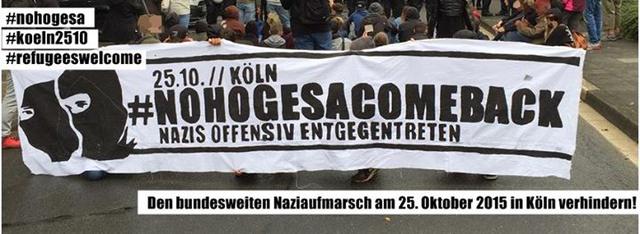 Vorig jaar oktober 2014 liepen 5.000 neonazi’s en hooligans door de Keulse binnenstad en konden vooral aan de Eigelstein en in stadsdeel Kunibertsviertel nagenoeg onverstoord bewoners, winkeliers met migratie achtergrond, voorbijgangers en journalisten aanvallen. Ongehinderd werd de Hitlergroet getoond en rechtse leuzen geroepen. Antifascistische tegen demonstranten waren niet in staat de groep te stoppen. Terwijl beide groepen elkaar probeerden te belagen stelde de politie zich voor het oog van de camera als doel beide groepen uit elkaar te houden. Het adequaat handelen van politie, ministerie van binnenlandse zaken of het gerechtshof vond tot op heden niet plaats.. Hoewel het politieke gemotiveerde geweld grotendeels werd doodgezwegen liet minister van binnenlandse zaken Ralf Jäger weten geshockt te zijn over de excessen in Keulen en de ‘’ nieuwe samenwerking van hooligans en rechts extremisten’’ aan het werk te hebben gezien. Hij meende de rechtbank te willen overtuigen ‘’soortgelijke toekomstige demonstraties te willen verbieden.’’ Antifascisten kunnen er echter niet op rekenen dat dit ook daadwerkelijk gebeuren zal.