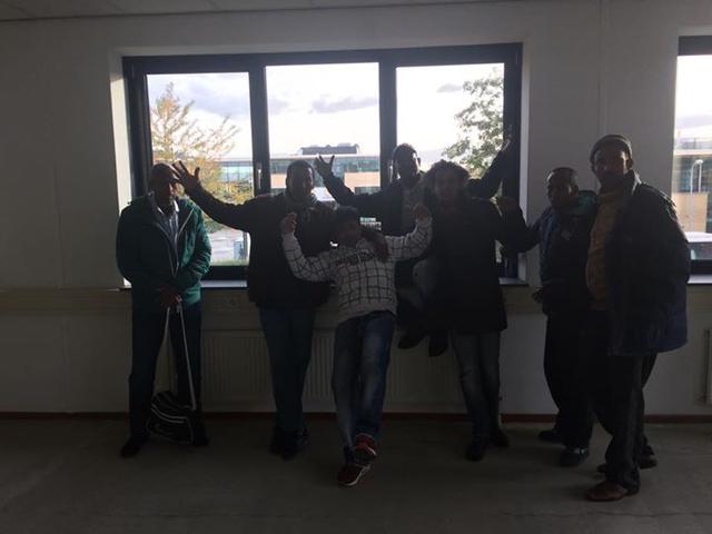 Zo heeft het collectief van vluchtelingen, dat bekendstaat onder de naam We Are Here, sinds het afgelopen weekeinde onderdak gevonden in een leegstaand kantoorpand aan de Zekeringstraat in het Westelijk Havengebied.