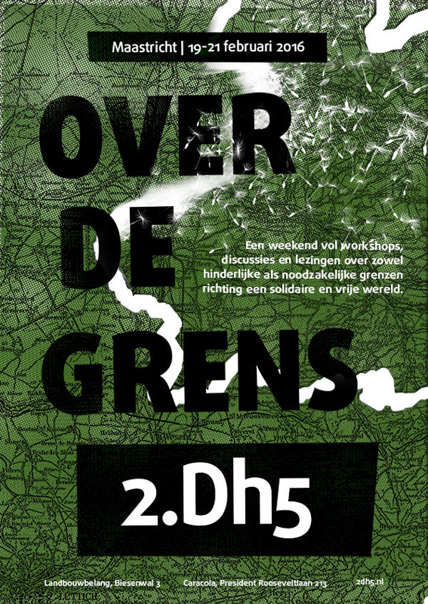 De elfde editie van 2.Dh5 vindt plaats in Maastricht. Dat sluit goed aan bij het thema: 'Grenzen'. Die spelen immers in veel opzichten een rol in het werk van activisten en wereldversleutelaars. Vaak heeft het woord een negatieve klank, zoalsbij landsgrenzen en wetten die een sta-in-de-weg zijn voor het streven naar een vrijere, eerlijkere en humanere wereld.