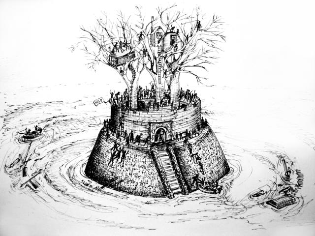 Ook in Leiden kunnen we niet om de klimaatproblematiek heen en dus heeft een groepje Leidse activisten het vandaag hogerop gezocht om de roep voor klimaatgerechtigheid te versterken met een lokaal geluid. Vanochtend hebben zij de Leidse Burcht symbolisch als vluchtheuvel in gebruik genomen.