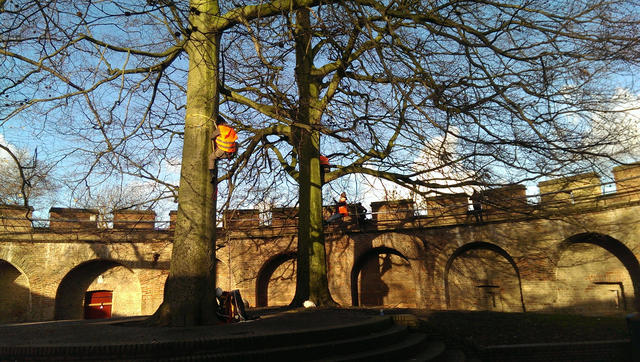 In de hoge bomen binnen de ringmuren van het oude fort zitten drie klimmers, die alledrie lange, verticale spandoeken uitrollen. Samen vormen ze de tekst ’Climate Justice Now’. De klimmers hebben genoeg eten voor een dag. Aan het eind van de middag zullen ze uit eigen beweging weer vertrekken. ’Beleid rondom klimaatverandering laat veel te wensen over’, staat er op een kartonnen bord dat om een van de boomstammen is gehangen. Vanuit de hoogte laten de klimmers touwtjes met onbeschreven blaadjes naar beneden komen en nodigen de bezoekers van de Burcht uit om een klimaatwens in de boom op te hangen. De wensen worden gefotografeerd en op het internet geplaatst.