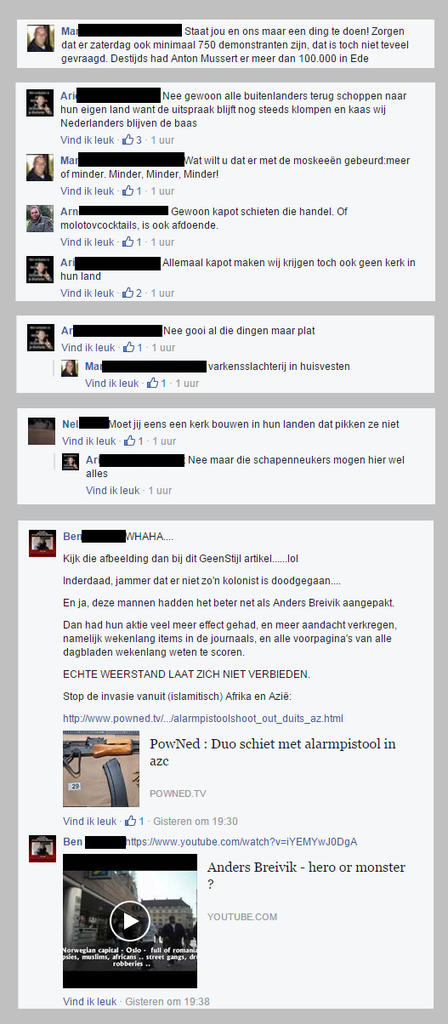 Ondanks de verzekering van organisator Arie Huisman dat het aangekondigde anti-AZC protest van zaterdag 20 februari op het Raadhuisplein in Ede een 'vreedzame demonstratie' moet worden, wordt er op de facebookpagina van het event herhaaldelijk opgeroepen tot geweld, met name naar mensen die zich uitspreken vóór vluchtelingen.