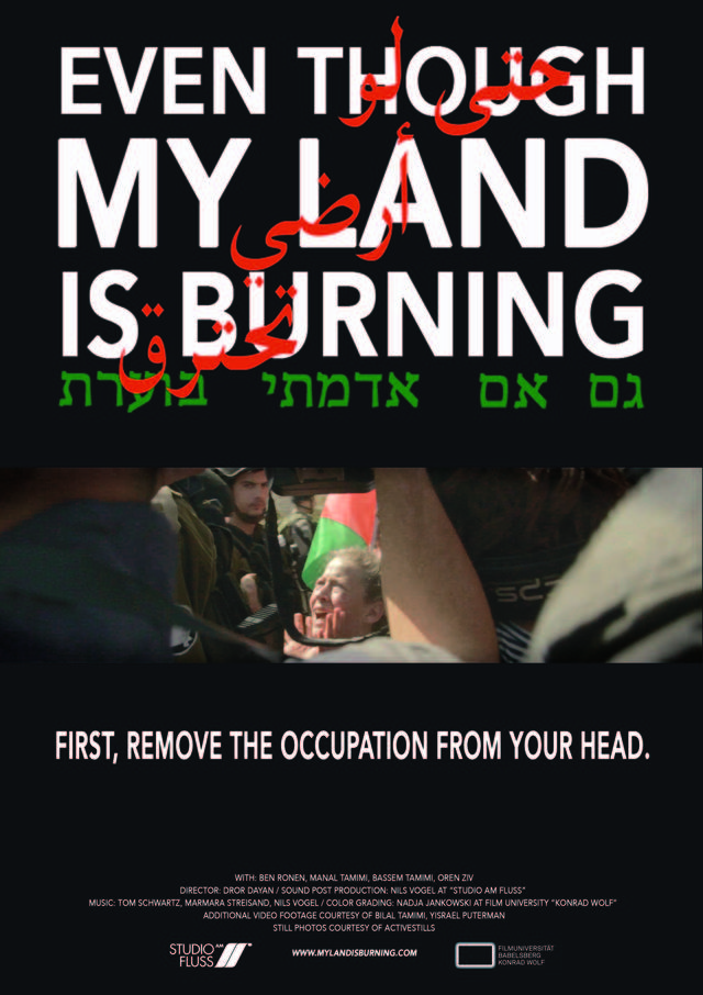 In the face of the daily violence and oppression of Israel’s occupation of Palestine, some Israelis and Palestinians still believe that resisting together can lead to a shared life in a just and free country for all. A decade after the Palestinian popular resistance against the apartheid wall began, “Even Though My Land is Burning” tells the story of Israeli-Jewish anti-Zionist activists and their role in the Palestinian popular struggle against the occupation and confiscation of land today, through a cinematic snapshot of one such activist ́s involvement in the West Bank village of Nabi Saleh.