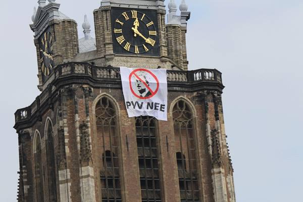 Met vier spandoeken, op de Grote Kerk, de Krispijntunnel en de Zwijndrechtse brug, hebben bezorgde Dordtenaren geprotesteerd tegen de komst van Geert Wilders naar Dordrecht. Daarnaast werden er flyers uitgedeeld op de markt en zijn op veel plekken stickers geplakt. Binnenstad bewoner Johan laat desgevraagd weten dat hij blij is met deze actie, omdat hij vindt dat er geen ruime is voor de uitsluiting waar Wilders voor pleit, ‘In Dordrecht is iedereen welkom en lossen we problemen samen op in plaats van mensen weg te sturen of niet meer mee te laten doen.