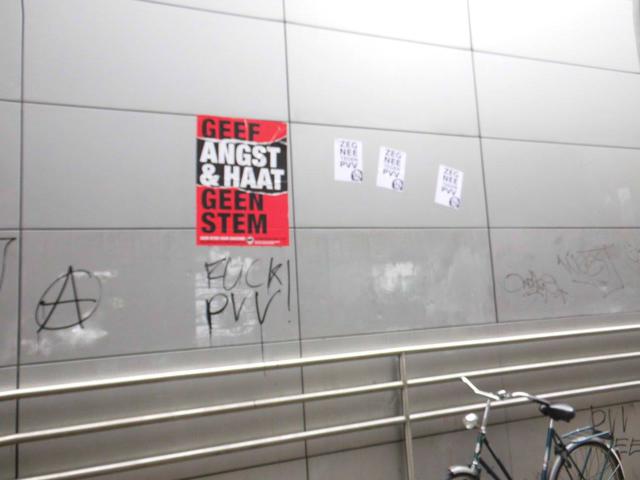 Vandaag bracht Geert Wilders een bezoek aan Dordrecht, om daar te flyeren in het kader van het referendum over het associatieverdrag tussen de EU en Oekraine. Gisteren werd Wilders Maastricht al uitgejaagd, en ook vandaag in Dordt kon hij rekenen op antifascistisch verzet tegen zijn racistische propaganda. Al dagen van tevoren werden er duizenden anti-Wilders stickers en anti-racistische posters geplakt. Bij zijn komst vanmiddag werden er verschillende spandoeken opgehangen en kwamen er tientallen mensen op straat in actie. Hieronder een verslag van 'Dordt Discriminatie Vrij’: