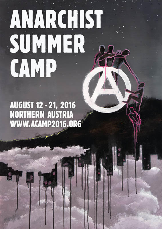 The anarchist camp 2016 aims to bring together people and to strengthen the cooperation within the left and anarchist movement across borders. An alternative society free of domination cannot be simply learned from books – it has to be tried out in real life. The camp can enable experiences with self-organisation, open up new perspectives for how to live together, and inspire ideas for new projects. A collective engagement with critical thought and praxis also encourages questioning our own actions and behaviours.