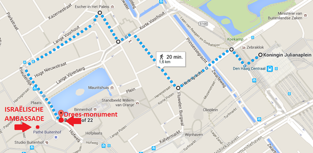 We will gather in front of the Central Station (Koningin Julianaplein) and walk to the Drees-monument, close to the Israeli embassy.