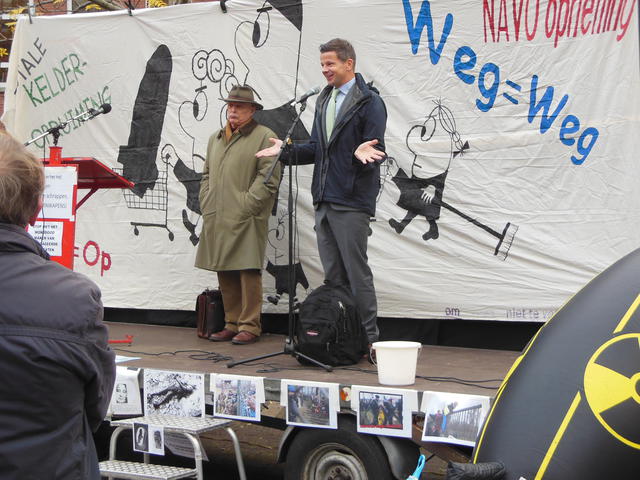 Door het Comité Eerherstel Meindert Stelling was in verband de zitting van het Hof van Discipline voor het gerechtsgebouw in Utrecht een manifestatie georganiseerd. De manifestatie trok ruim zestig mensen en verliep in goede sfeer. En, niet onbelangrijk, ook het weer werkte mee. Sprekers waren Gerard van Vliet, Marcel Schuckink Kool, Barbara Smedema, Rob Boogert en Selma van Oostwaard1). Tussendoor werden vredesliedjes van vroeger ten gehore gebracht.