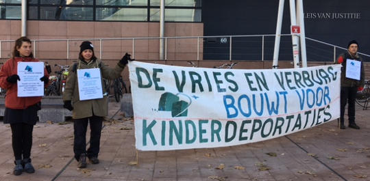 This way the judge finally came to his verdict after the final words of the two defendants: guilty of libel. Because: "The criticism of government policy was uttered over the back of a private company. That it is hurtful and thus libel." Also the judge concluded that there is no question of a prison, of deportations and no pride in the results achieved... So total denial. And over whose back was it again? Over the backs of refugee families and children whose detention is profit for De Vries en Verburg, isn't it?