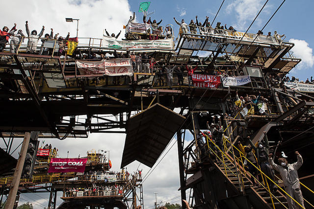 The area concept is about having all kinds of different forms of actions in the rhenish lignite mining area take place side by side and in solidarity with one another (there is currently a debate whether this is to happen in August 2017 or during CoP23 in November). This can be demonstrations, small group actions, human chains, mass actions of civil disobedience and much more. The Rhineland is focused on coal mining resistance and climate justice, but this focus can very well be broadened! It is quite likely that the concept will need several camps to take place, or one core camp and several small ones which might share parts of their infrastructure.