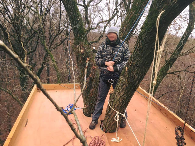 La ministère de la défense a commandé de descendre la maison d’arbre. Comme nous ne font pas obéir, depuis mardi 21 février nous doives la défendre. Laisses les envoyer l’armée! Nous vont la défendre avec toutes les moyennes!