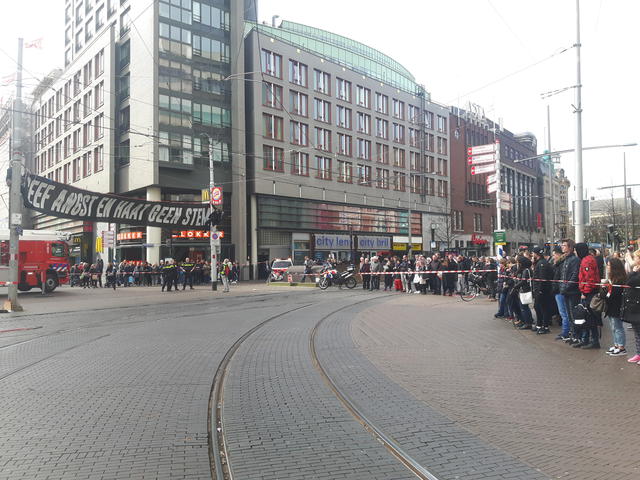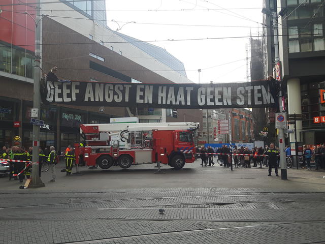 kruising Spui-Grote Marktstraat opgehangen. ‘Geef angst en haat geen