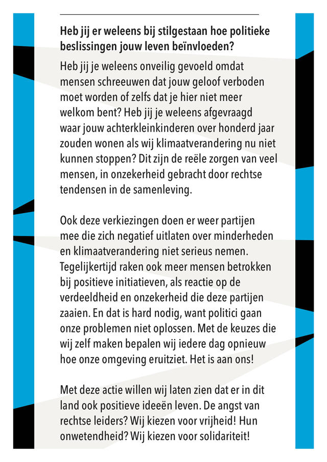 Onderstaande flyer wordt uitgedeeld door activisten op de grond