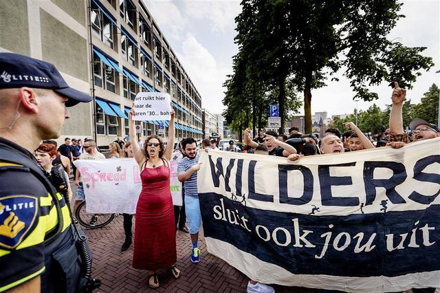 Arnhem - Een paar honderd mensen - PVV'ers en rechts daarvan - zijn komen opdraven om met Geert Wilders te protesteren tegen Ahmed Marcouch als nieuwe burgemeester.
