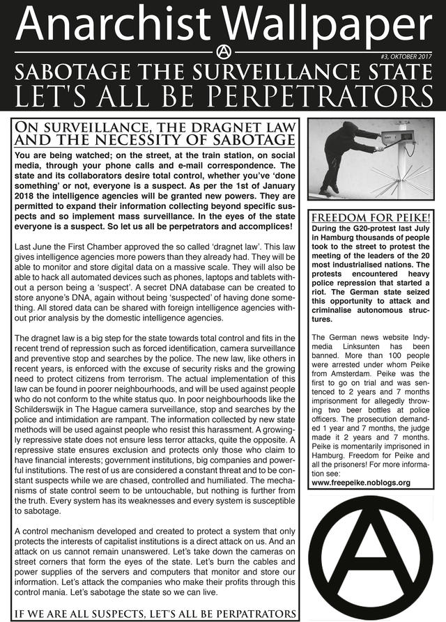 Anarchist Wallpaper #3 October 2017: Sabotage the surveillance state! Let’s all be perpetrators.