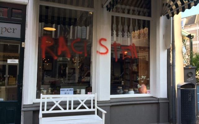 Last wednesday night (7 february), graffiti saying "Racists" and "Culture ≠ costume" has been sprayed on three stores in Nijmegen. Two of the stores have cultural appropriation in their window displays, and the third has a colonialist statue above its door. We want racism out of our streets! We will continue the antiracist and anticapitalist struggle until all inequality and oppression has been eradicated.