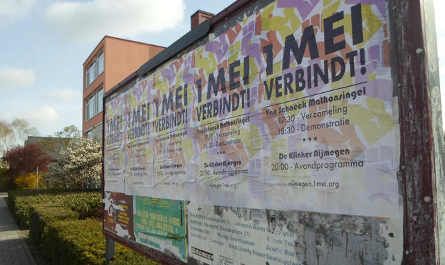 Sluit je op 1 mei om 17:30 aan bij de 1 mei-demonstratie in Nijmegen. de Van Schaeck Mathonsingel (tegenover Nijmegen Centraal) bij ons aan, waar we samenkomen en een einde aan uitbuiting en de permanente staat van oorlog eisen en samen starten met de bouw aan een alternatief. Na de demonstratie is er in de Klinker (v. Broeckhuysenstraat 46, Nijmegen) een avondprogramma met muziek, eten, discussie en gemeenschapszin.