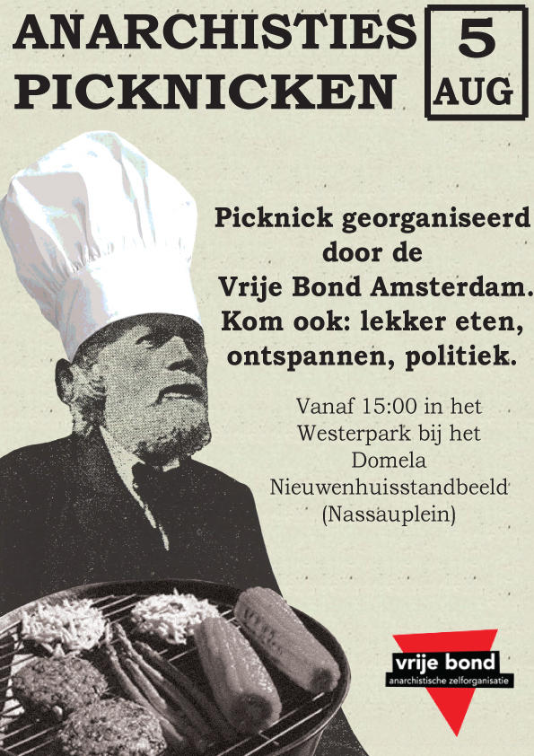Het is hartje zomer en 99 jaar geleden dat Ferdinand Domela Nieuwenhuis, één van de belangrijkste anarchisten uit de Nederlandse geschiedenis, overleden is. Allebei goede redenen om samen te komen en te reflecteren op onze strijd. (En te genieten van het mooie weer!) Op 5 augustus om 15:00 zullen we gaan picknicken bij het Domela Nieuwenhuisstandbeeld op het Nassauplein en we nodigen iedereen uit om zich daarbij aan de sluiten! Er zal eten en drinken zijn, diverse praatjes, en we zorgen voor zines en kleedjes om op te zitten. Leuk!
