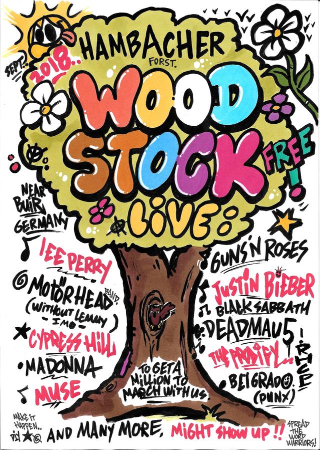 WOODSTOCK 2018. Gratis festival in het Hambacher woud.
