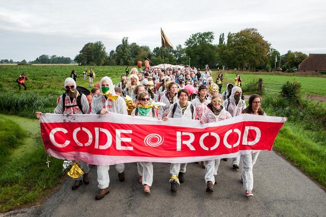 In 2017 ontstond Code Rood als een nieuw verband van groepen en individuen uit verschillende hoeken van de Nederlandse klimaatbeweging. Het doel: directe actie voeren tegen de fossiele brandstoffen industrie in Nederland. Samen met 350 mensen hebben we in 2017 de kolenhaven in Amsterdam voor een dag geblokkeerd. Dit jaar hebben we met 700 deelnemers business as usual in het tankenpark in Farmsum (Groningen) ontregeld om tegen de gaswinning in de regio te protesteren. Met deze massa-blokkade van 50 uur hebben we onze kracht in een jaar verdubbeld. Een aantal weken geleden voerden 6,000 mensen actie tegen energiebedrijf RWE in Duitsland, waaronder ook veel deelnemers uit Nederland.