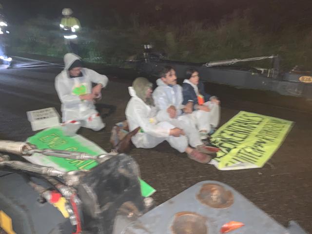 Wij blokkeren het transport van een nieuwe hoogspanningstransformator die geplaatst wordt bij de Amercentrale, een oude kolencentrale in Geertruidenberg.
