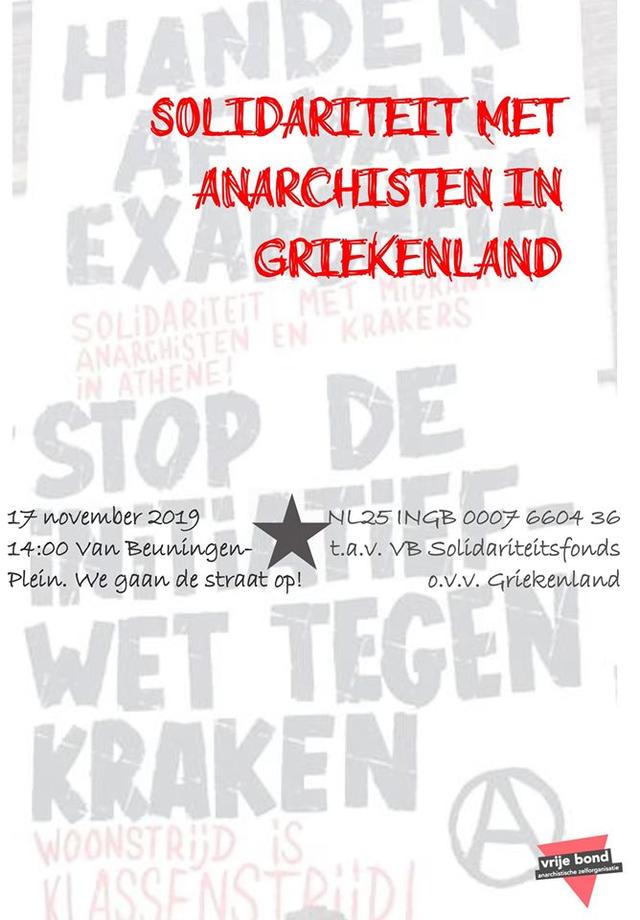 De Vrije Bond is ook een financiële campagne gestart om hen te steunen hun projecten zoveel mogelijk te kunnen doorzetten en de repressie het hoofd te bieden. Help mee door een bedrag (klein of groot) over te maken naar NL25 INGB 0007 6604 36 t.a.v. VB Solidariteitsfonds o.v.v. Griekenland. Je kunt natuurlijk ook een benefiet, campagne of solidariteitsactie organiseren!