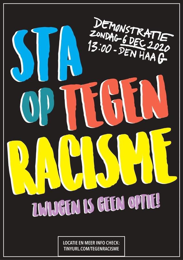 Over het protest: op 6 december protesteren we in Den Haag tegen racisme en extreemrechts. De demonstratie begint om 13.00 uur op de Koekamp, ter zijde van de Laan van Reagan en Gorbatsjov. Vergeet je vrienden, familie en collega's niet te vragen om mee te gaan!