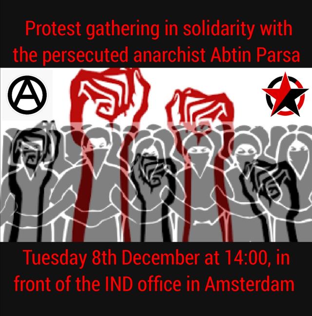 We call for the protest gathering in order to put pressure on dutch regime to stop extradition of the persecuted anarchist Abtin Parsa to greece.