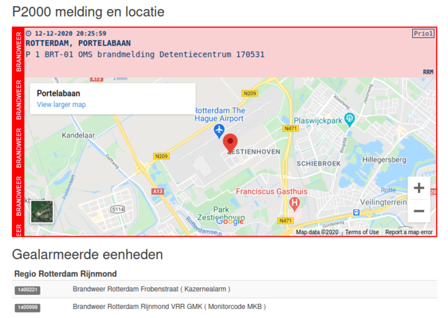 screenshot; zgloszeniae alarmu przeciwpożarowego z osrodka deportacyjnego Rotterdam (DCR)